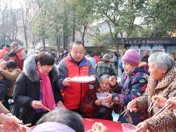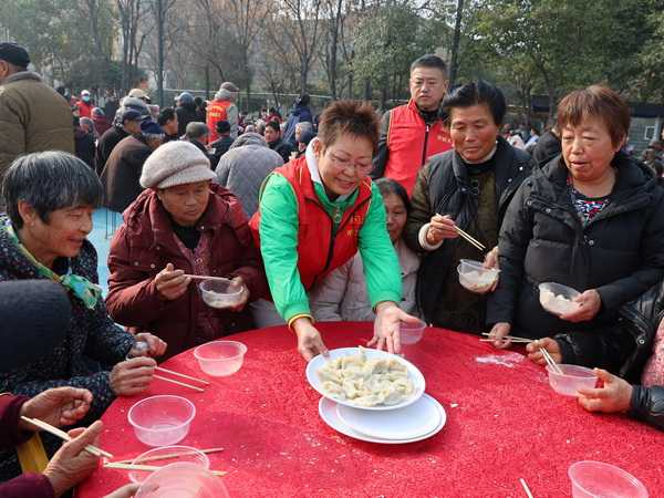 义工们热情招呼前来赴宴的居民们,为老人端上糕点、分发餐具,用亲切的话语与温暖的笑容,让每一位到场者都感受到家的温馨。舞台上的文艺演出精彩纷呈,舞台下的饺子宴其乐融融。大家围坐一堂,吃着鲜香的饺子,唠着家常里短,欢声笑语驱散了冬日的寒意,温情在活动现场静静流淌。
