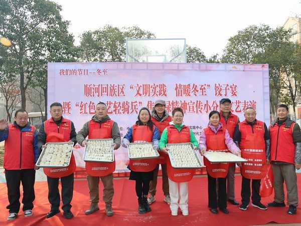 (公益记录者徐建华 通讯员宋军)12月19日上午,冬至节气即将到来。由中共开封市顺河回族区委宣传部、区新时代文明实践中心主办,开封市义工协会、工业街道新时代文明实践所、宜春苑社区新时代文明实践站、开封市广场健身操舞协会协办的“文明实践 情暖冬至”饺子宴活动在绿都上河城社区广场隆重举行。开封市义工协会的11名身穿红马甲的义工,满怀志愿服务的热忱参加了这次活动,为凛冬时节的顺河回族区绿都上河城社区注入融融暖意。11名义工中有7人是共产党员。